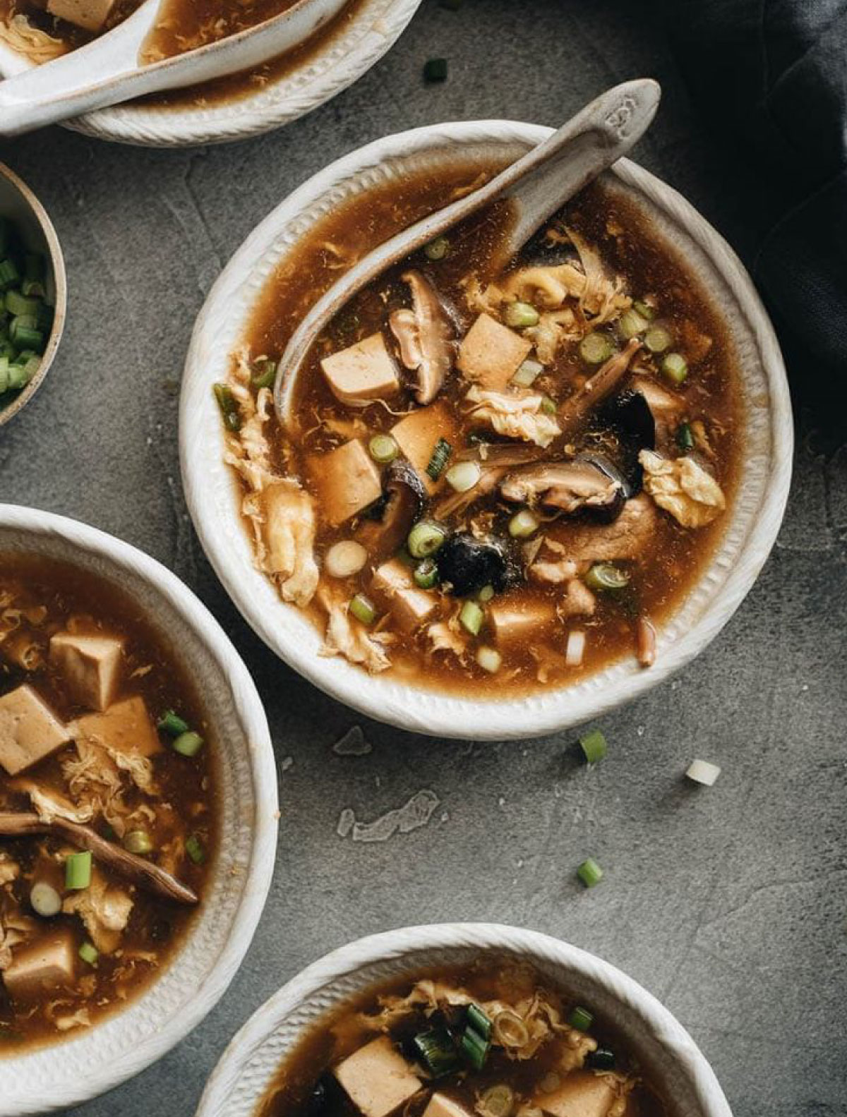 Poulet, champignons noirs, vermicelle, tofu, légèrement relevé